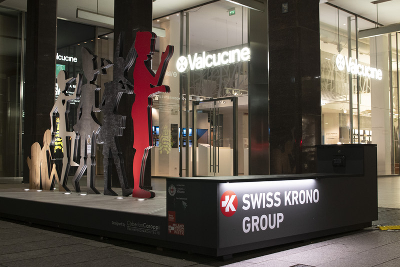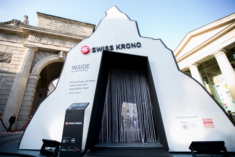 2018年米兰展期间,SWISS KRONO瑞士卢森板材以高度创新的材料SWISSCDF与全新的CamuStyle TX和CamuStyle ZX纹理相结合制作的作品INSIDE在第XXV阿普雷广场-Brera Design District展出。