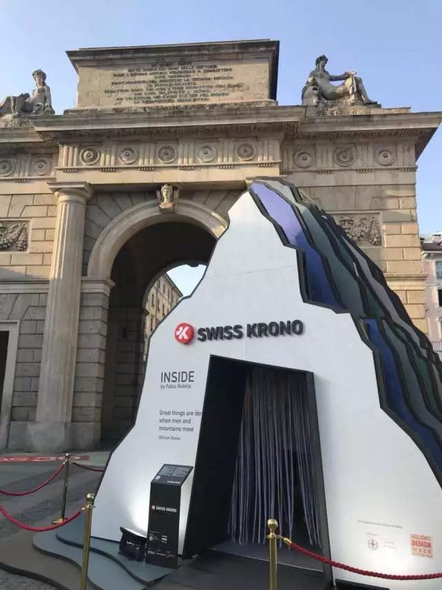 SWISS KRONO 瑞士卢森作品“INSIDE”,灵感来源于瑞士著名山峰Matterhorn马特洪峰,寓意表达“新千年新语境后,人、自然与生物间的关系变化”,你可以走进“山”中,调动你的情绪与情感,亲身体验和谐的人与自然的关系,SWISS KRONO 瑞士卢森期望,横跨米兰天际线的马特洪峰能唤醒人们对“人与自然和谐关系”的重视,这也是SWISS KRONO 瑞士卢森2018年在全球推广的核心理念。