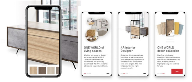 基于ONE WORLD系列产品数据库,SWISS KRONO 瑞士卢森板材推出全新AR应用程序 ——ONE WORLD AR INTERIOR DISIGN,该应用程序可以将装饰物虚拟投影到真实表面上,创意即时可见。