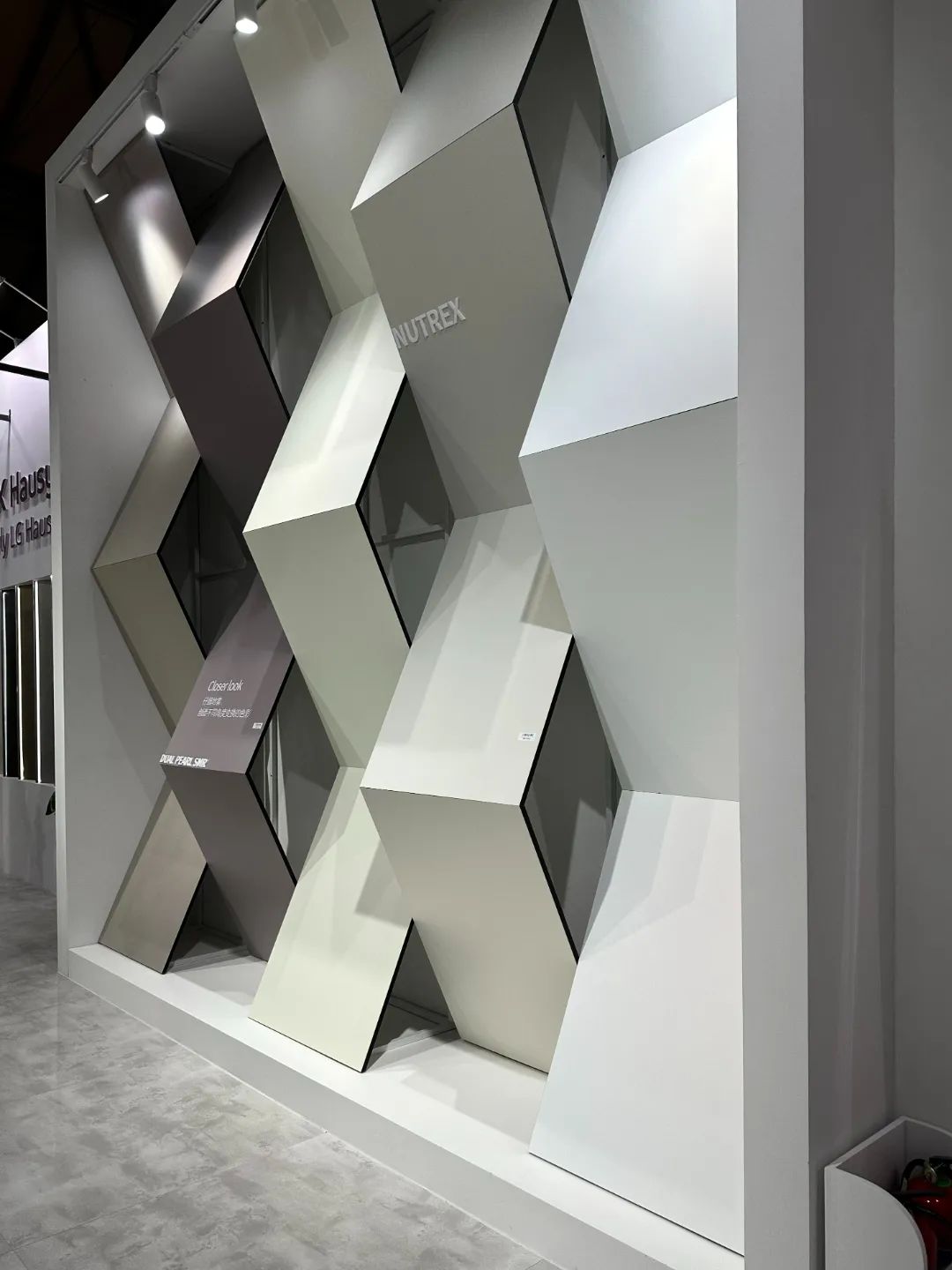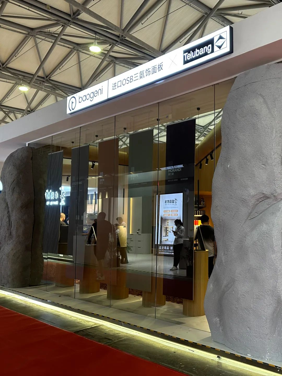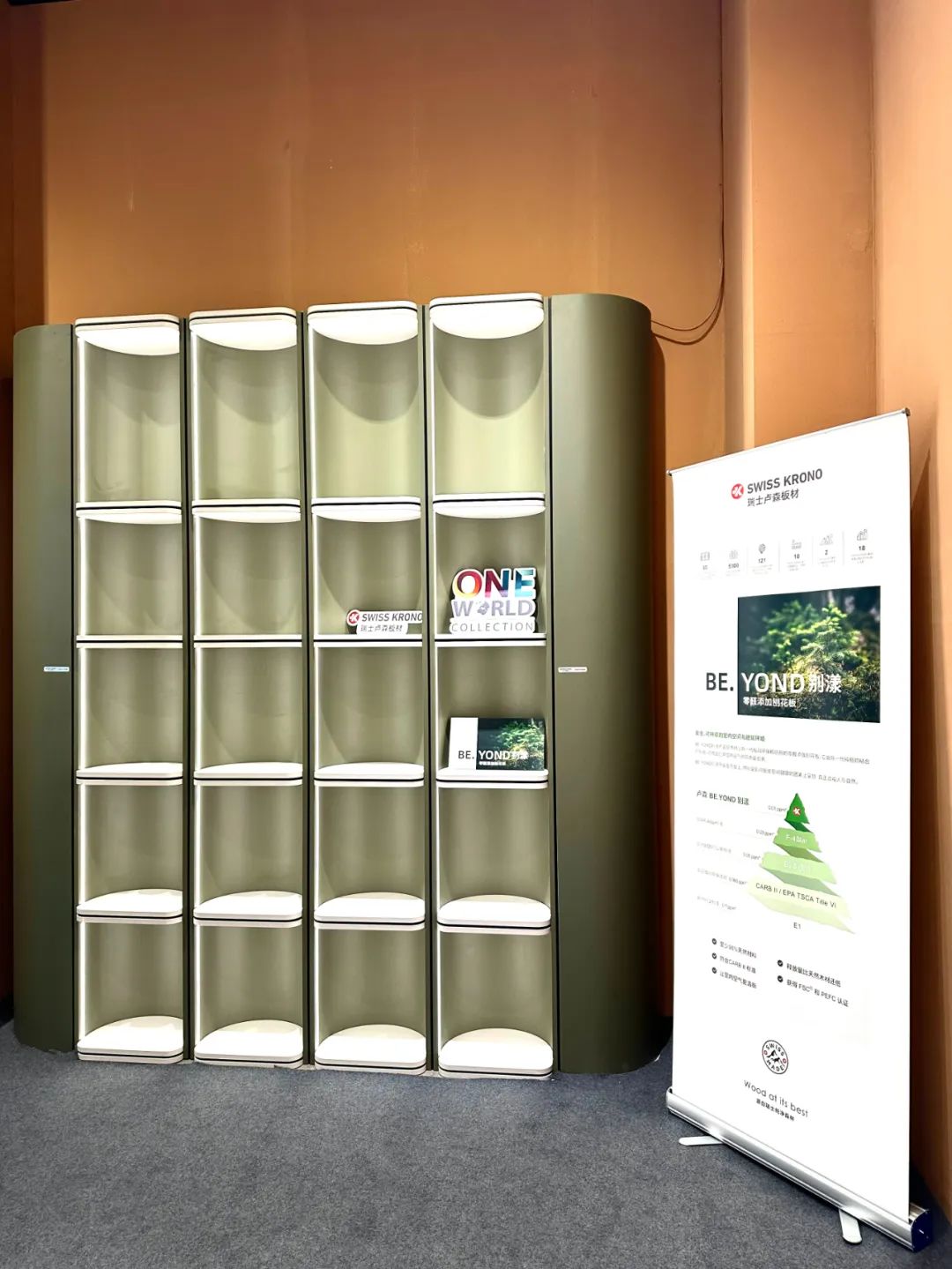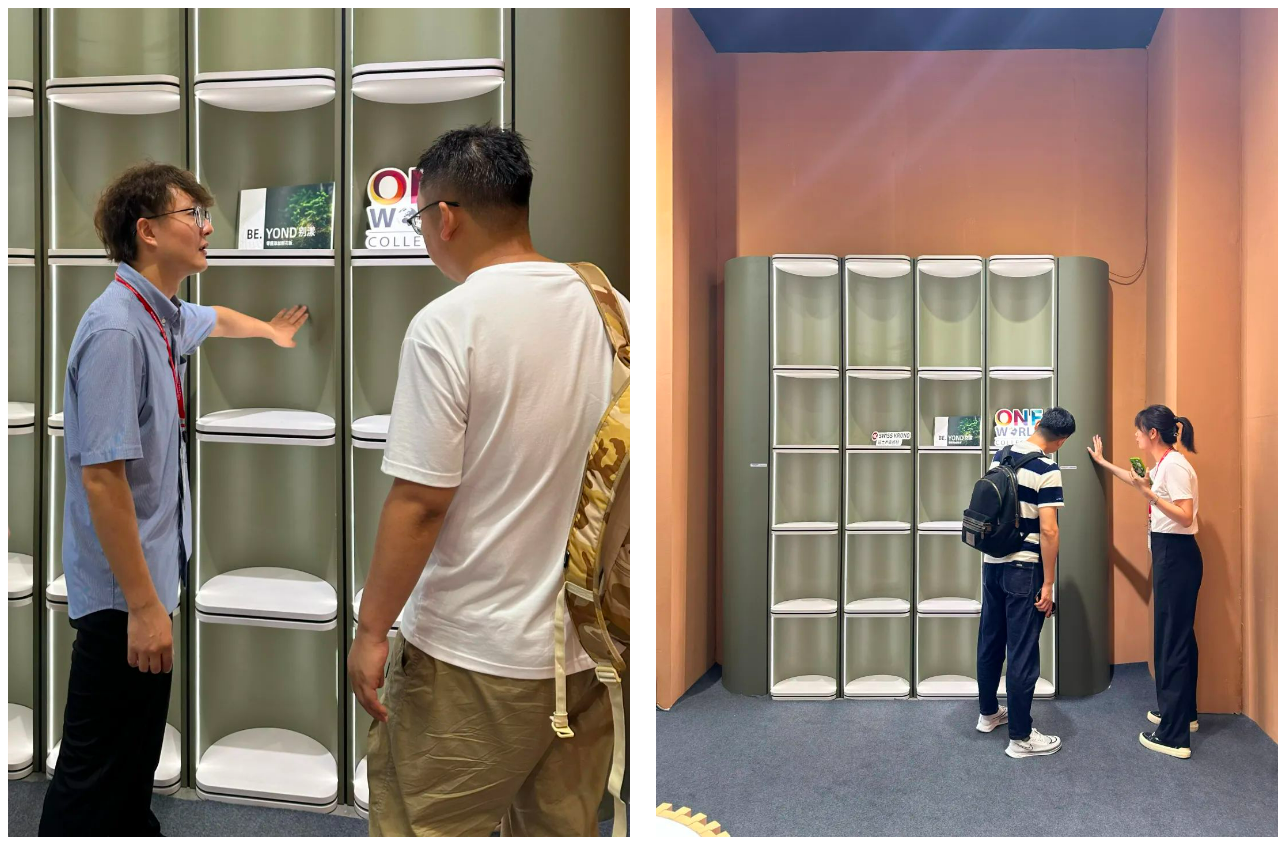 本次展会,瑞士卢森板材精选了5款花色与BE.YOND别漾零醛添加刨花板组合打造质感家具。布纹、绒面、木纹等不同饰面的搭配,高级且富有层次感。