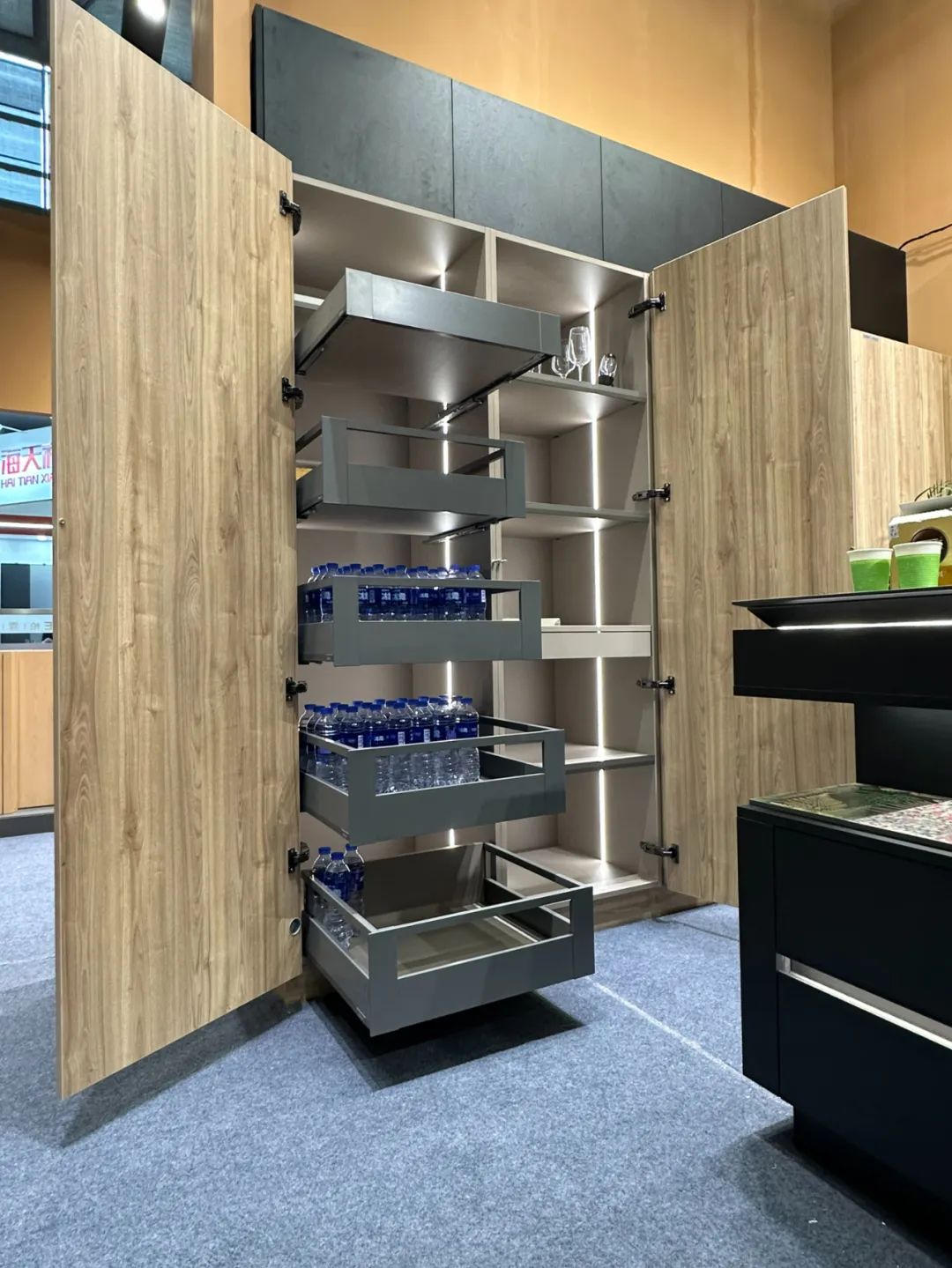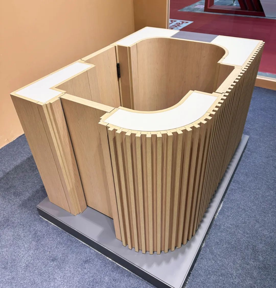 此次厨卫展上,宜兴柏霖家居携手瑞士卢森板材,围绕“颜值、设计、环保、工艺”四大核心关键词,将别漾零醛添加刨花板融入橱柜、岛台、圆弧展示柜等不同家具设计,让众多行业人士与参展观众近距离感受高品质生活的美好,同时为不同用户需求提供满意的家居解决方案。