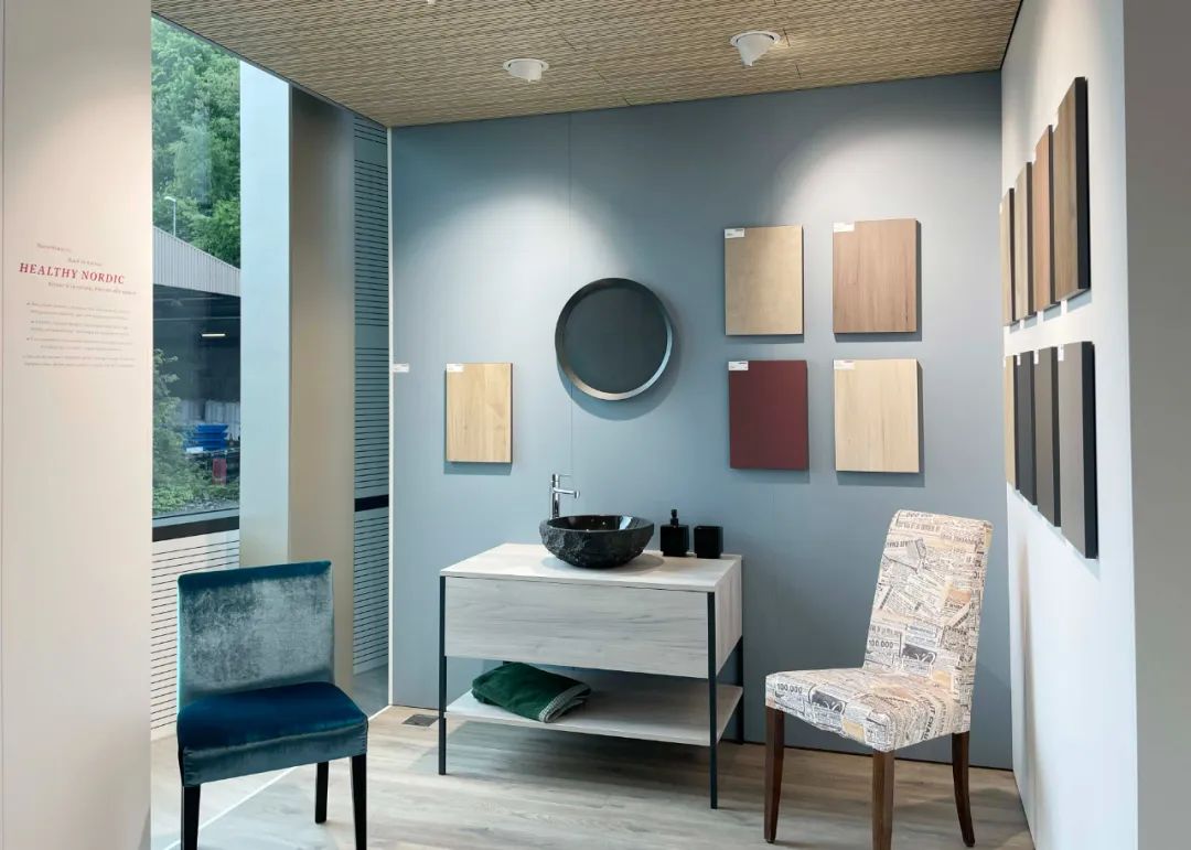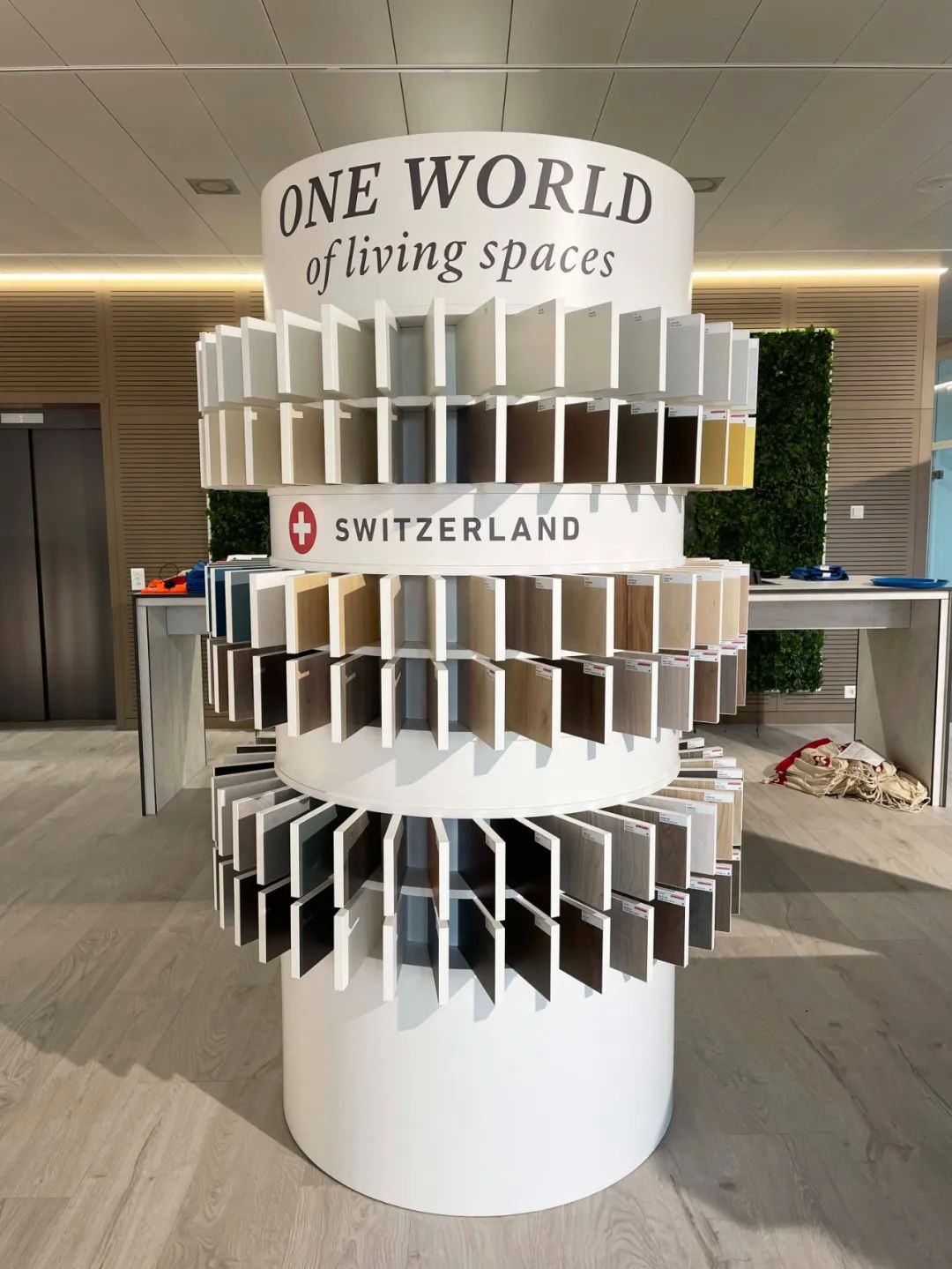 在SWISS KRONO集团瑞士工厂的展厅内,你还可以见到瑞士卢森板材旗下各种各样的产品、花色及表面纹理。百变的工艺及造型设计,见证着瑞士卢森板材产品超强的可塑性。